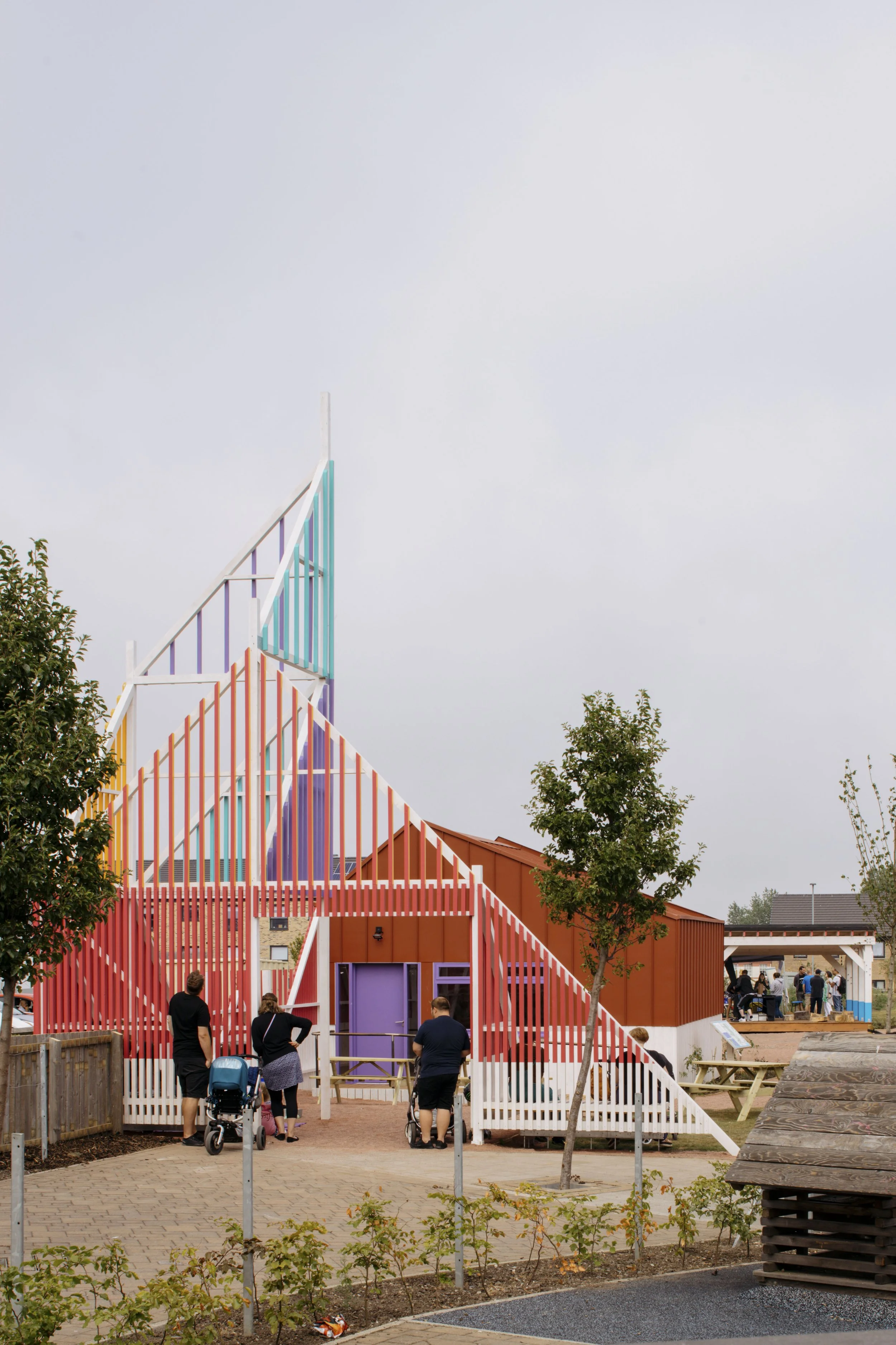 A café, stage, gardens and play areas, integrating a focus on wildlife habitats and flood prevention, creating a space the wider community can use freely.